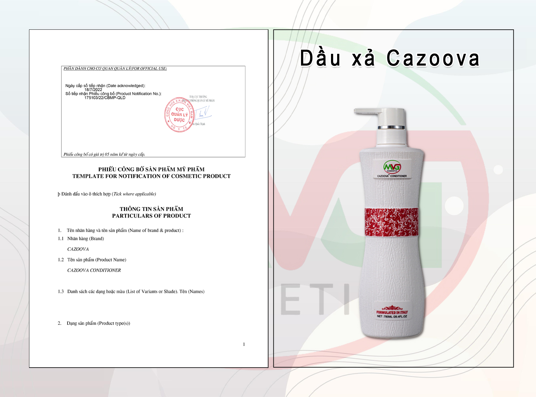 Phiếu Công Bố Mỹ Phẩm