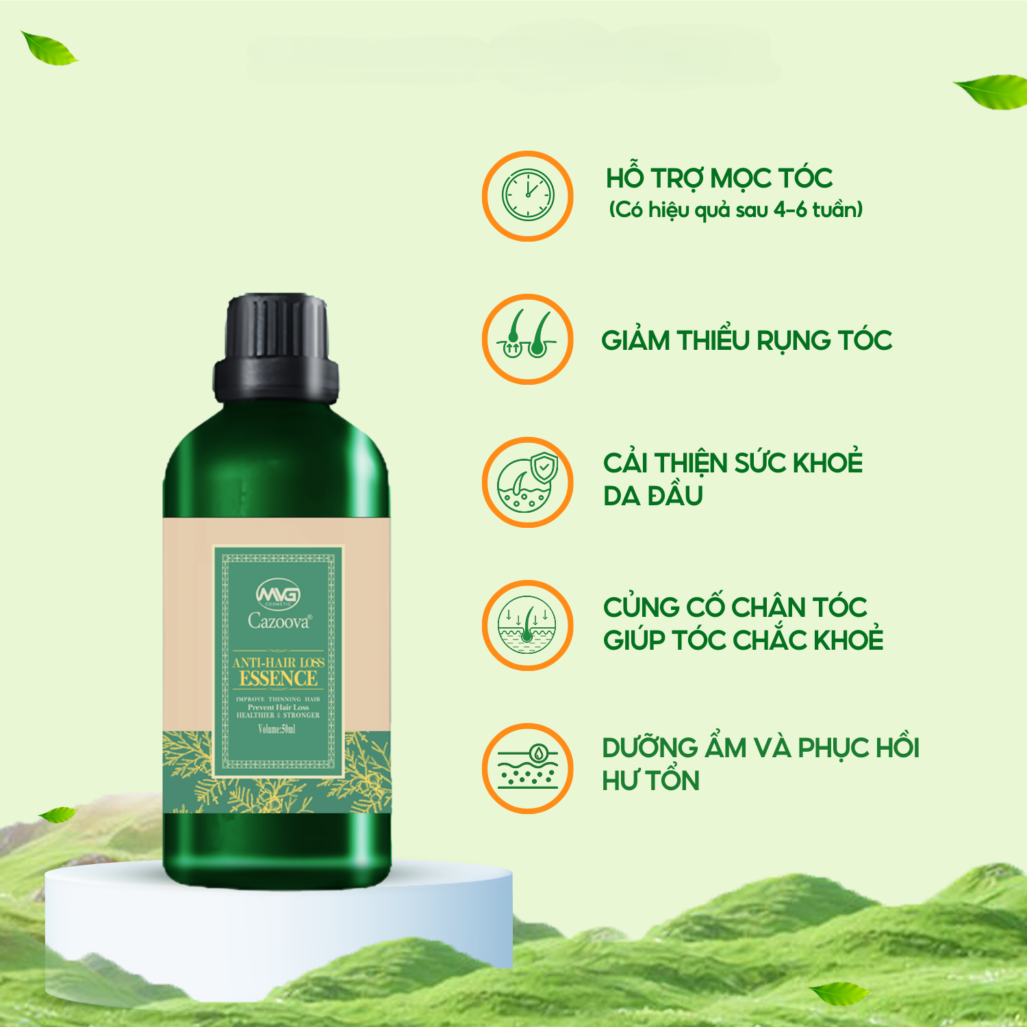 ● Cải thiện sức khỏe da đầu: Giảm viêm, kích thích tuần hoàn máu, giúp tóc phát triển khỏe mạnh.